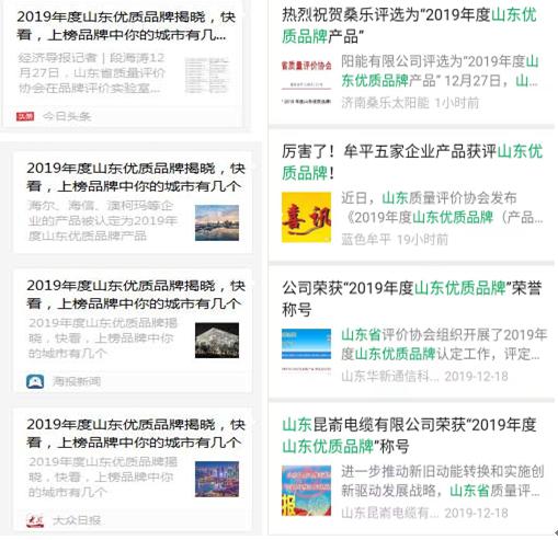2019年度山东优质品牌认定结果获得社会关注和认可